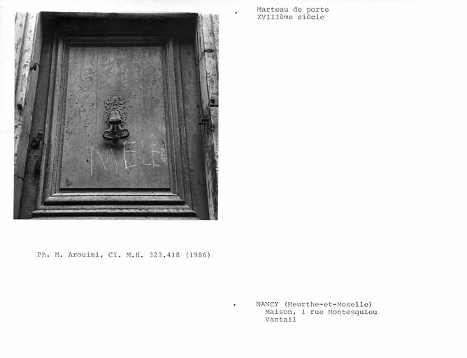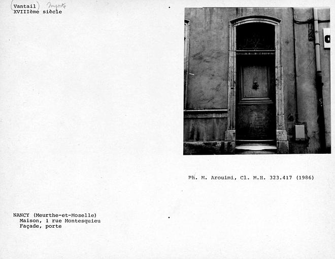 La porte d'entrée, vantaux et imposte compris : inscription par arrêté du 12 avril 1944