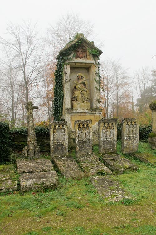 Cimetière avec mur de clôture, chapelle, ossuaire, petite maison du gardien, tombes, bénitiers, morceaux ou débris de sculptures : classement par arrêté du 13 août 1931