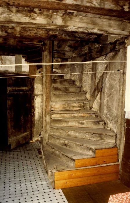 Exemple unique de maison de la fin du 15e siècle, plus proche des maisons urbaines - par sa volumètrie et ses deux encorbellements - que des maisons rurales. Seul le premier niveau est en maçonnerie ; le pan-de-bois, malheureusement masqué par un crépi moderne, est bien visisble de l'intérieur. La maison conserve sa porte d'origine, à tympan décoré d'un écu, ainsi que l'escalier d'accès aux combles, en vis et construit en bois. Des cheminées de la fin du 17e siècle ou du début du 18e siècle témoignent d'un remaniement de l'aménagement intérieur à cette époque.