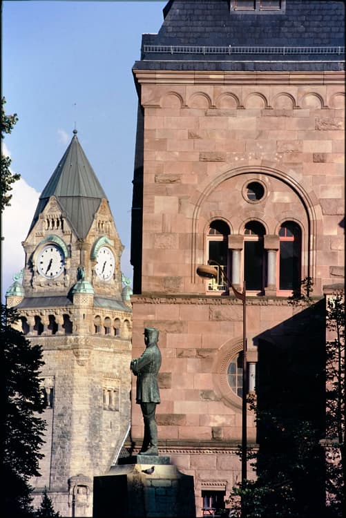 Hôtel des postes construit de 1907 à 1911 par l'administration allemande sur les plans de l'architecte Ludwig Bettcher, directeur du service de l'architecture postale du Reichsland et dans un style néo-roman, suivant les directives de l'empereur Guillaume II. En 1944, des travaux de restauration extérieurs sont entrepris au titre des dommages de guerre.