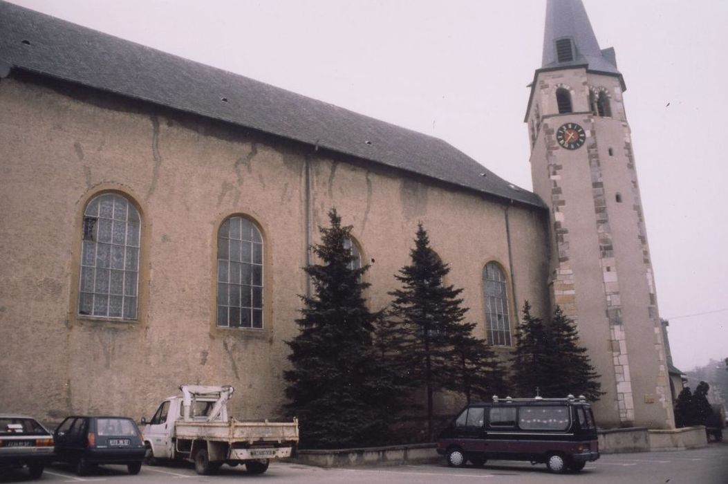 Tour-clocher contenant l'ancien choeur ; terrain contenant les substructions de l'ancienne nef de ladite chapelle, en partie sous l'église actuelle (cad. 2 117) : inscription par arrêté du 22 octobre 1991