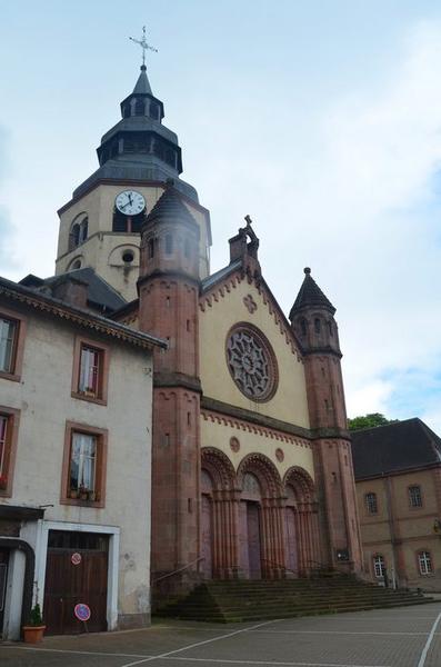 Etablissement monastique créé vers 640, comprenant une église circulaire dont il ne subsistait, au 18e siècle, que la partie hémisphérique transformée en choeur. L'ensemble de l'établissement a subi d'importantes modifications entre 1680 et 1720. L'église se trouve au sud du cloître qui se développe autour du jardin, les communs et le logis abbatial. Au 18e siècle, le cloître, construit en grès rose enduit, était de plan carré, se composait de quatre galeries à arcades et utilisait le pilastre toscan. Deux ailes ont disparu : l'aile nord, détruite par l'incendie de l'église ; l'aile Est, occupée par la nouvelle église. L'église d'origine, détruite par un incendie en 1809, a été reconstruite par l'architecte Prosper Morey de 1866 à 1869, dans un style néo-médiéval. Le clocher, de plan octogonal, se compose d'un couronnement de dômes superposés. Le logis abbatial, de plan en L, a connu deux phases de construction : la partie sud entre 1728 et 1749 ; la partie nord vers 1763-1766. La grande salle, dite salle des abbés, a conservé l'essentiel de son décor d'origine (lambris, bibliothèque murale, cheminée de marbre). La cour des communs était largement ouverte sur les vergers et le potager. Les communs sont constitués par un bâtiment agricole au nord (1731) et la bibliothèque (1719). A partir de 1796, et jusqu'en 1981, l'installation d'une industrie textile occupe l'ensemble des bâtiments et dénature les intérieurs.