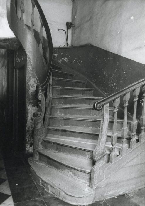 La façade sur rue et l'escalier avec sa rampe (cad. HO 77) : inscription par arrêté du 28 décembre 1984