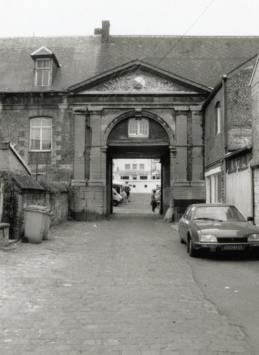 Façades et toitures du bâtiment d'entrée, du palais abbatial et de l'aile en retour (ancienne bibliothèque) ; sol et sous-sol de la cour de l'abbaye, des maisons construites sur l'emplacement des bâtiments détruits fermant la cour, du square du 8-Mai (emplacement de l'église abbatiale) ; vestiges du moulin et de son bief au sous-sol du 20, rue Marcel-Aymé ; façades et toitures du bâtiment du 18e siècle séparant le square du 8-Mai de l'impasse Wincart ; dépendances de la fontaine Sainte-Aldegonde : portail, façades et toitures des bâtiments situés de part et d'autre du portail (cad. AO 686, 691 à 697, 699, 703, 763, 791, 792, 823, 846, 847, 849, 850, 893 à 895, 910, 983, 984) : inscription par arrêté du 16 juin 1992 ; Les façades et toitures non protégées par mesures d'inscription du 16 juin 1992 des bâtiments de la fontaine Sainte-Aldegonde et de l'aile d'entrée, les façades et toitures de l'aile ouest en totalité, de manière à préserver le quadrilatère originel de la cour (en appuyant la délimitation côté cour sur les éléments subsistants de façade du XVIIIe siècle), l'ensemble situé place du général-de-Gaulle et 2 à 20 rue Marcel-Aymé sur les parcelles n°9 à 12, 17, 18, 20, 25, 26 et 33 section BH : inscription par arrêté du 30 novembre 2020