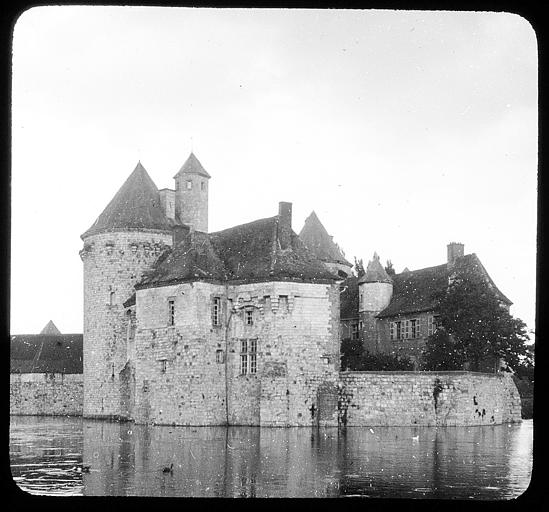 Façades et toitures du château et des bâtiments de la basse-cour ; tour nord du château ; sol de la cour du château et de la basse-cour ; douves en eau ou comblées ; pont reliant la basse-cour au château sur la parcelle AB 119 ; deux ponts et voie d'accès au château sur la parcelle AB 122 (cad. AB 117 à 122) : inscription par arrêté du 12 avril 1989
