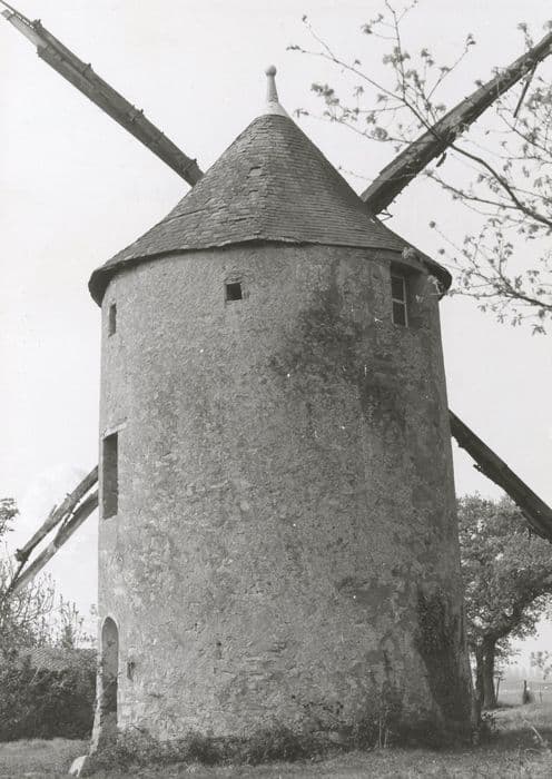 Une pierre de taille posée tout en haut de sa tour porte la date 1773 : probablement celle de sa construction. Il est acquis par la famille Levoyer en 1865, dont les descendants y seront meuniers jusqu'en 1950. Les ailes arrêtées à cette époque ne tourneront plus jamais, malgré une réfection de la toiture peu après 1965. £Il s'agit d'un petit moulin-tour comprenant deux étages et une coiffe couverte d'ardoises. La paire de meules est située au premier étage, tandis qu'à l'étage supérieur se trouve une trémie d'alimentation en grain. La coiffe est virée grâce à un treuil et une crémaillère. La bluterie, qui originellement était installée au rez-de-chaussée de la tour, fut transportée au début du 20e siècle, dans un petit bâtiment annexe ; elle était entraînée grâce à une transmission horizontale qui partait du rez-de-chaussée de la tour et rejoignait ce bâtiment. Une seule verge subsiste, encore hérissée de verrons pivotants, vestiges des volées Berton qui animaient autrefois la machine.