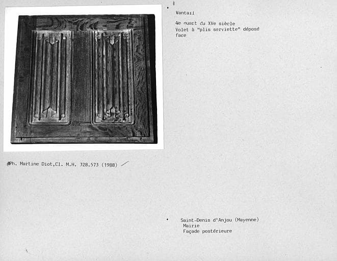 © Monuments historiques, 1992. Cette notice reprend intégralement les termes de l’arrêté de protection au titre des Monuments historiques. Elle répond à l’obligation réglementaire du ministère de la Culture d’établir la liste générale des immeubles protégés (art. R. 621-80 du Code du patrimoine). Elle est donc opposable et fait foi juridiquement. Aucune copie numérique ou papier ne sera fournie par courrier ni courriel. Le dossier de protection complet et l’arrêté sont consultables uniquement sur place, dans la salle de lecture de la Médiathèque du patrimoine et de la photographie (MPP), à Charenton-le-Pont (Val-de-Marne).