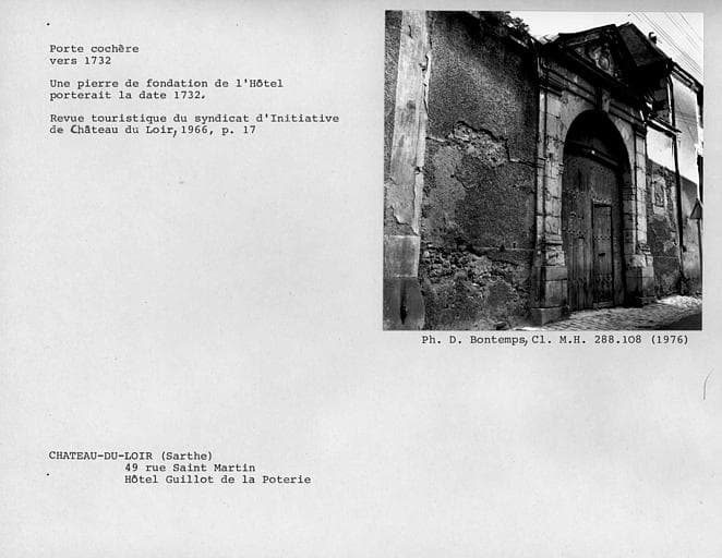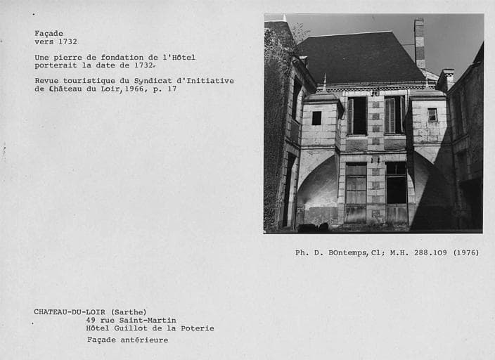 Hôtel Guillot de la Poterie (cad. C 572) : inscription par arrêté du 26 novembre 1968