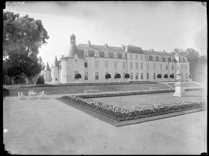 Façades et toitures du château, y compris l'aile du 19e siècle, et celles des ailes des communs ; l'escalier avec sa cage ; les pièces suivantes du rez-de-chaussée avec leur décor : la salle à manger, la bibliothèque, le grand-salon, la chapelle (cad. E 20) : inscription par arrêté du 21 décembre 1984