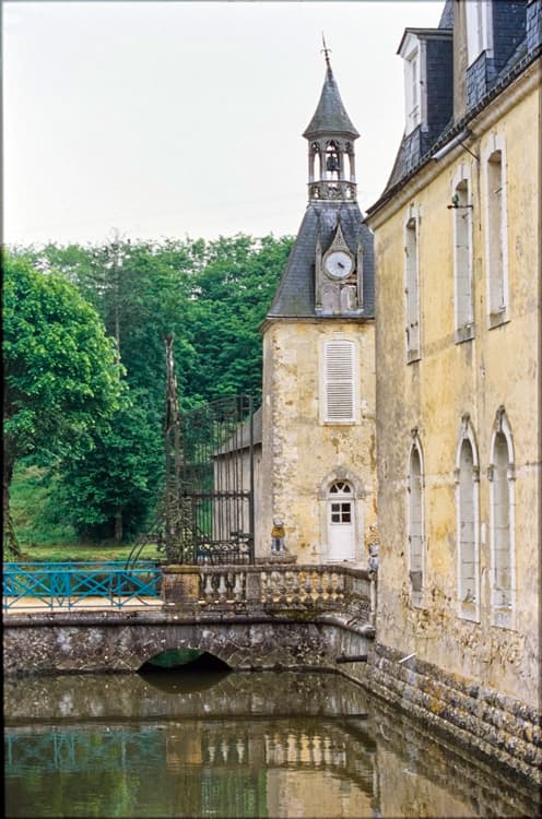 A partir d'un édifice des 15e et 17e siècles, reconstruction du château au milieu du 18e siècle. Quelques communs datent du début du 19e siècle. Une longue allée plantée dessert le château entre deux communs. Derrière le commun nord, se trouvent des bâtiments de ferme (grange, étable, colombier). Le château, de plan rectangulaire, est cantonné de tours rectangulaires étroites (façade sur cour) et de deux ailes identiques (façade sur jardin). La disposition interne du château a été habillée au 19e siècle (seules subsistent quelques menuiseries du 18e siècle).
