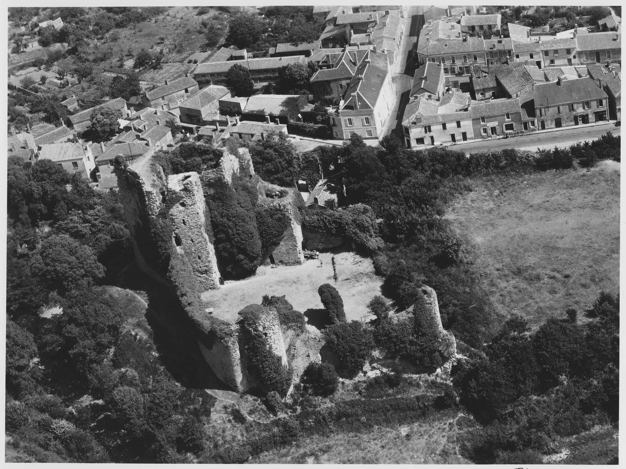Premier château construit au 11e siècle sur un éperon naturel (ancienne motte féodale : 1018-1030, donjon). Au 12e siècle, enceinte intérieure avec tour, éperon et enceinte basse. Au 14e siècle, édification du grand logis contre le mur d'enceinte à l'est, moulin à eau, agrandissement du donjon. Au 16e siècle, petits éperons nord-est et nord-ouest, ouvrage en tenaille au sud. En 1628, démantèlement de la forteresse sur ordre de Richelieu.