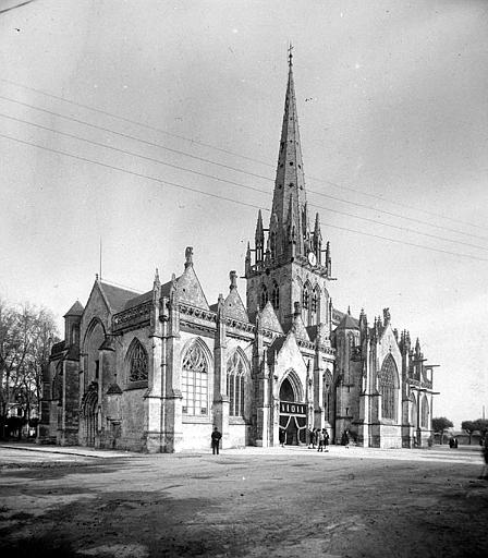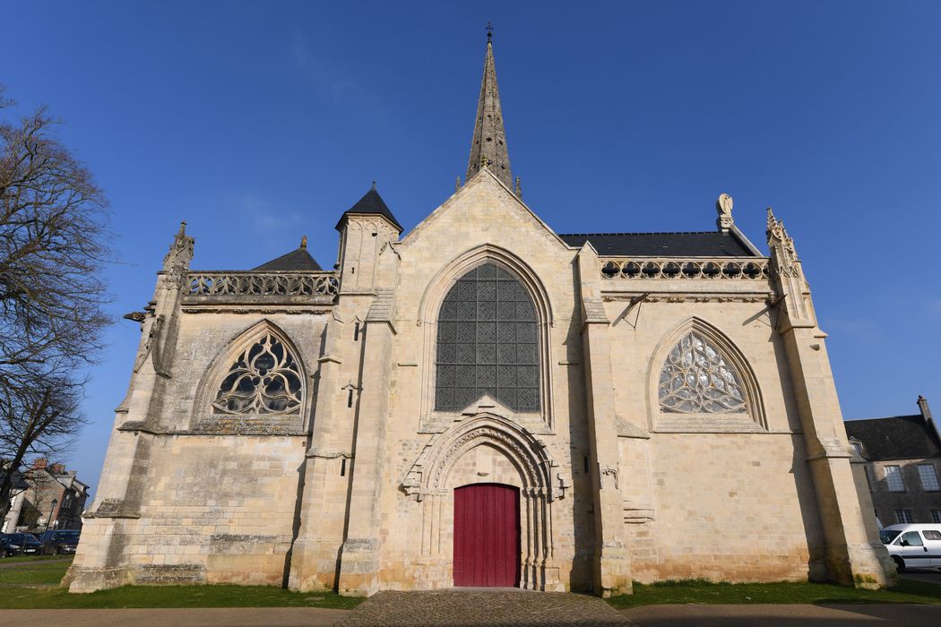 Edifice mentionné dès le 12e siècle, conservant pour la période romane le portail occidental, les piles cruciformes de la croisée du transept et les piles de la nef. Au 15e siècle, la reconstruction de l'église est décidée sous la domination anglaise. Le choeur est refait, les piles de la nef arasées à trois mètres du sol pour les couronnés de chapiteaux à tailloirs. Le choeur est représentatif du style flamboyant. En 1517 a été ajoutée la chapelle d'axe. Au 19e siècle ont été ajoutées une sacristie au nord et une pièce faisant pendant au caveau. Il subsiste un ensemble de sculpture monumentale (anges musiciens) refait au cours du temps, et en particulier après la Seconde Guerre mondiale.