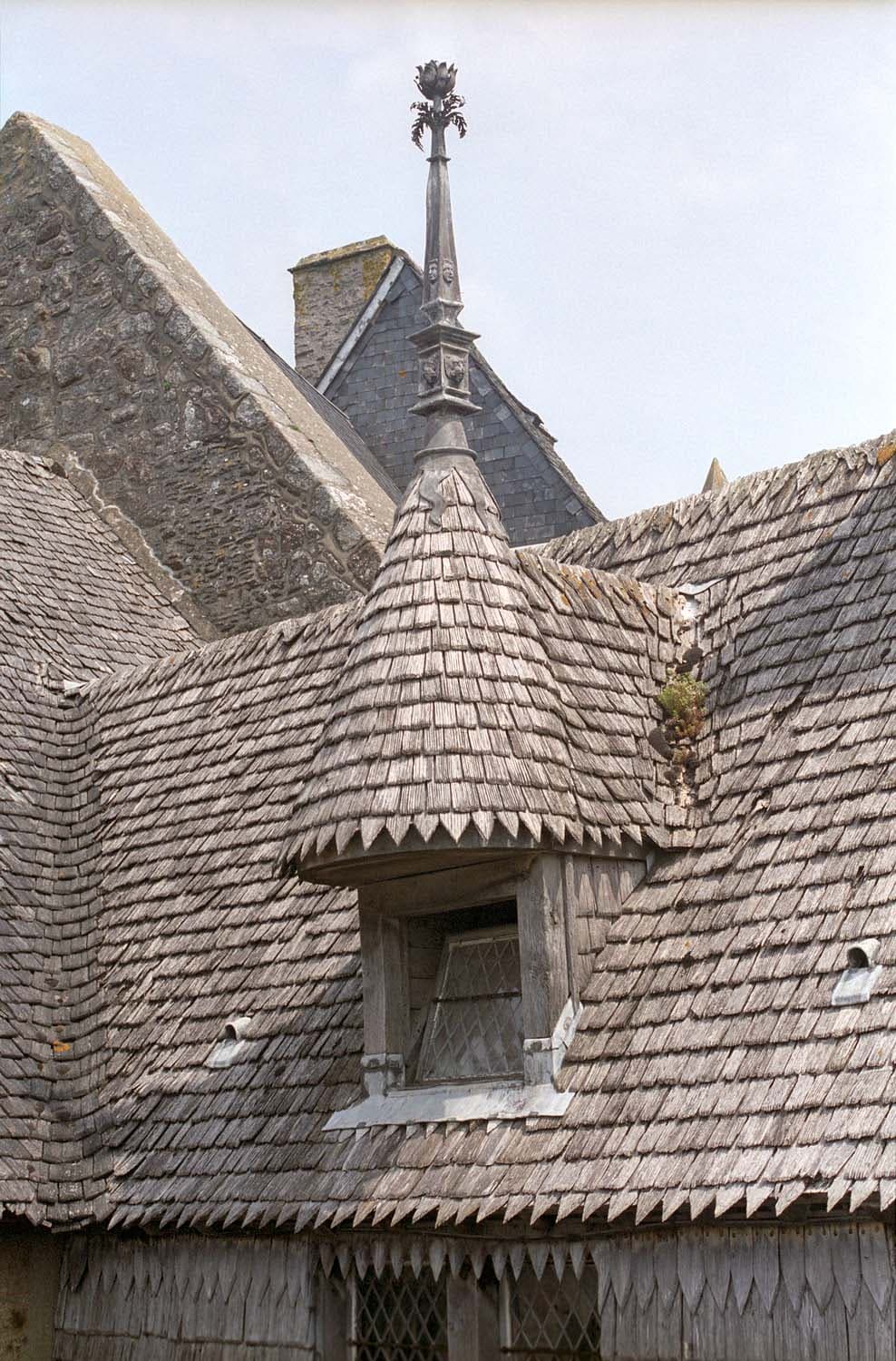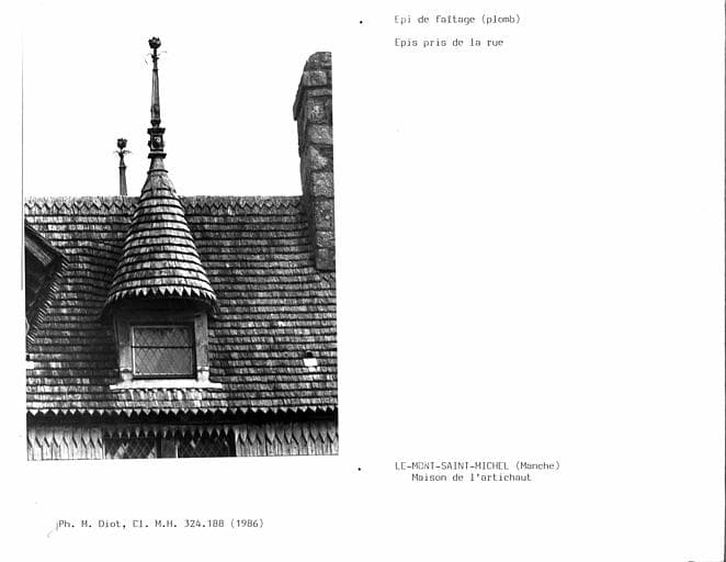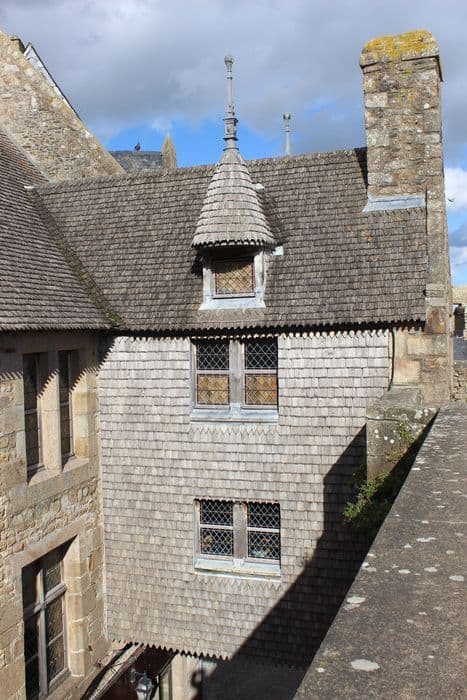 Façades du côté de l'arrivée au Mont Saint-Michel : premier étage et toit. Façade du côté opposé à l'arrivée : premier étage (cad. AB 80) : classement par décret du 9 août 1918 ; Partie supérieure de la maison (cad. AB 80) : classement par arrêté du 5 mai 1936