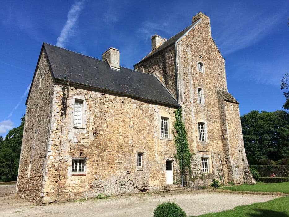 Manoir caractéristique du Cotentin. Un château s'élevait au 14e siècle, fortifié de 1327 à 1347 par Edouard III d'Angleterre. Il était occupé par la garnison anglaise de Saint-Sauveur-le-Vicomte. Jean de Vienne reprit la forteresse en 1374. Les dates de construction du manoir s'échelonnent du 15e au 17e siècle. L'édifice a conservé un aspect défensif avec cinq tours et des douves. L'ensemble comprend un bâtiment principal dont toutes les ouvertures ont été percées au 16e siècle. Au sud, une tour d'escalier flanquée d'une échauguette a perdu son couronnement. Au nord, deux tours plus modestes se dressent de part et d'autre du pont. Sur la façade principale, une porte du 17e siècle, avec un fronton interrompu par un blason, donne accès au manoir. A l'est de ce bâtiment se dresse un pavillon carré. Sur ce pavillon s'appuie perpendiculairement, au nord, un petit bâtiment orné d'une tour d'escalier en façade. A l'ouest, sur la façade arrière, un pavillon fut ajouté au 17e siècle, se rattachant au bâtiment principal par une tour à moitié engagée, et d'une aile en saillie du 15e siècle sous laquelle un passage voûté donne accès au pavillon.
