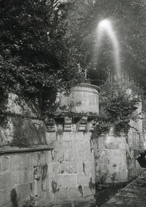 Les vestiges des anciens remparts (trois tourelles) ont été remaniés, semble-t-il, au 19e siècle, en style Henri II, pour en faire un élément décoratif de plaisance en fond de propriété particulière. Une construction cubique en briques avec harpes de pierre aux angles, repose sur un mur de soutènement en granit flanqué de deux tourelles dont le parapet en surplomb repose sur des corbeaux. Plus loin, se trouve une troisième tourelle semblable aux deux premières, reliée aux précédentes par un mur de granit dont la partie supérieure a disparu, à l'exception d'un court tronçon avec trois arcades en plein cintre. Il ne s'agit pas de défenses urbaines, mais d'un décor dont, toutefois, les préoccupations défensives n'étaient pas totalement absentes, ainsi qu'en font foi les meurtrières pour armes à feu qui percent le parapet des tourelles.