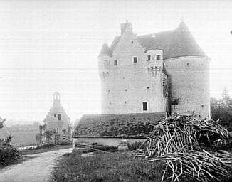 Corps de logis rectangulaire à trois étages. En arrière, se trouve une forte tour cylindrique, et en avant une tour octogonale contenant l'escalier à vis ainsi que le pigeonnier. Chaque angle comprend une tourelle en encorbellement avec mâchicoulis. A quelques mètres en avant de la façade principale, est située une chapelle indépendante, percée de baies flamboyantes, et renfermant des fresques du 16e siècle. Cette demeure constitue le type le plus complet et le plus classique des manoirs du Perche.