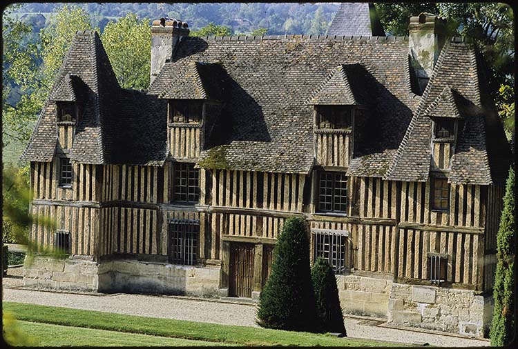 Demeure qui rompt définitivement avec la tradition du manoir médiéval, bâti sur plan quadrangulaire à étage avec tourelle d'escalier. Le parti adopté, corps de logis rectangulaire encadré de deux pavillons d'angle en décrochement, appuyé à l'arrière sur une massive tour carrée, parti de symétrie et de verticalité mis en relief par l'absence de pièces de bois obliques, annonce déjà le classicisme. Les toitures aigües et la sculpture des lucarnes encadrées de pilastres cannelés, appartiennent à la Renaissance. Chaque pièce est prolongée, sur la façade principale, par une petite pièce dans les pavillons.