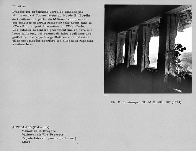 Les façades et toitures du manoir et du bâtiment du pressoir ; le pressoir proprement dit et son mécanisme (cad. D 251 à 254, 257) : inscription par arrêté du 25 février 1974 - Le jardin du manoir (cad. D 450, lieudit La Bruyère) : inscription par arrêté du 16 juin 2008