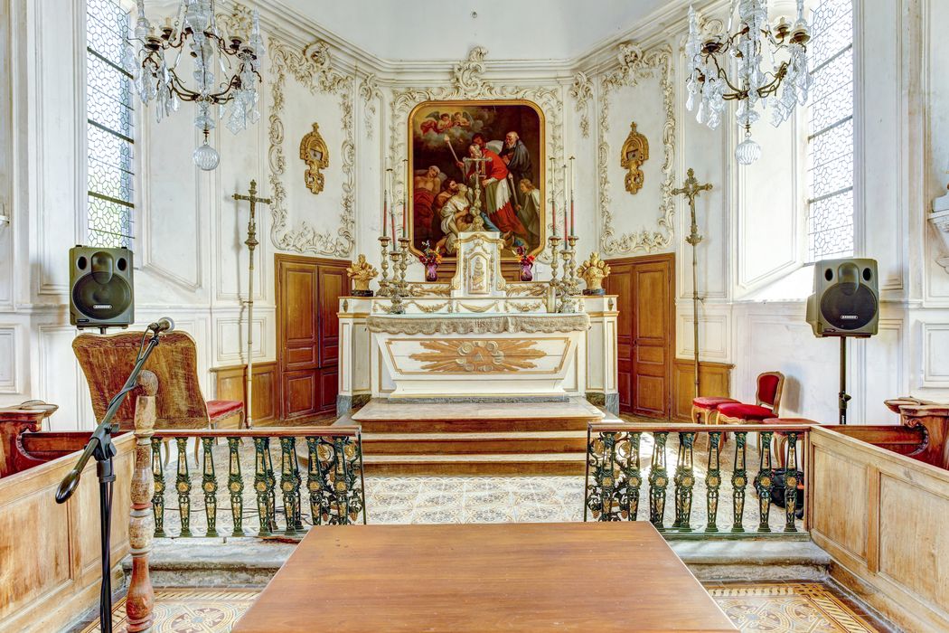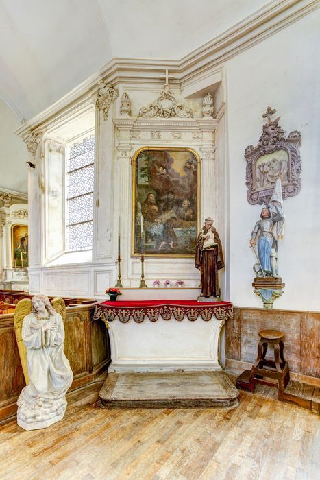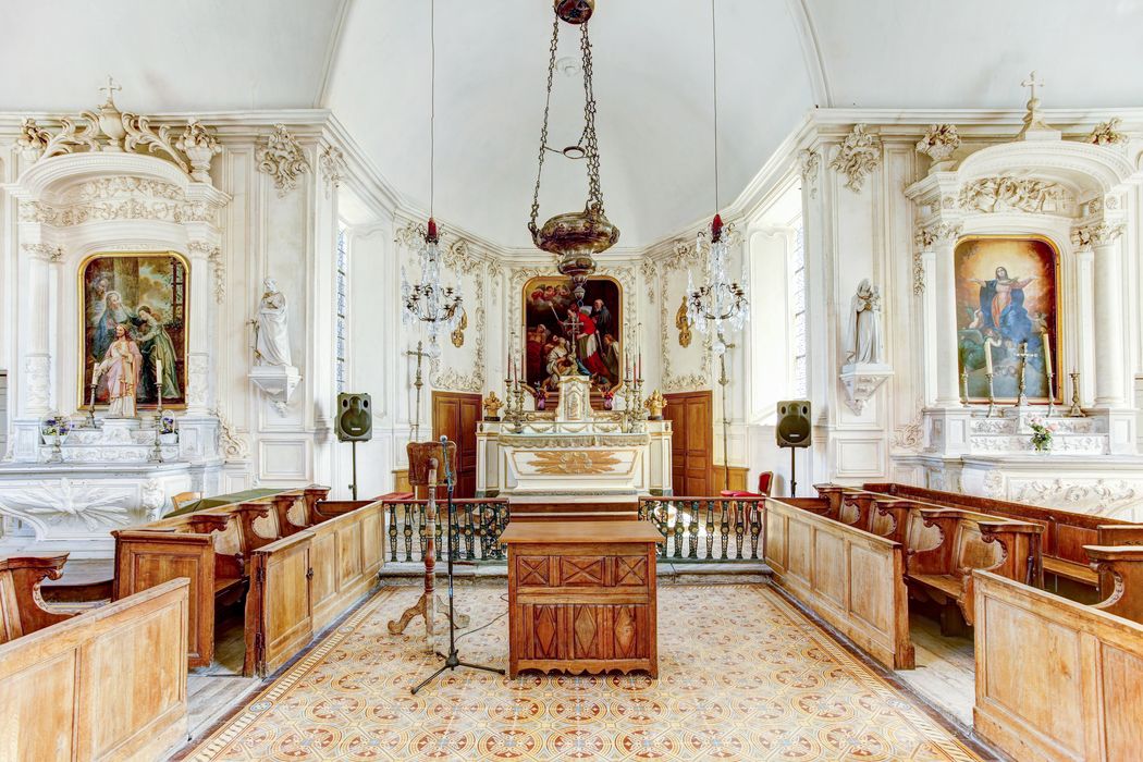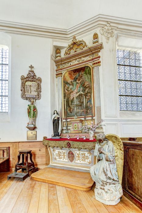 Les parois supportant l'ensemble décoratif en stuc du 18e siècle faisant le tour du choeur et du transept (cad. B 424) : classement par arrêté du 13 octobre 1958 - L'église en totalité, à l'exclusion des parties classées (cad. ZH 40, Le Bourg) : inscription par arrêté du 18 août 2006