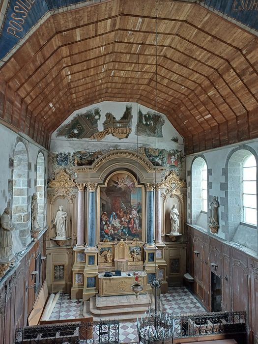 Façades et toitures ; deux escaliers jumeaux situés dans l'aile nord ; chapelle avec le choeur des religieuses (cad. AE 596) : inscription par arrêté du 13 février 1975