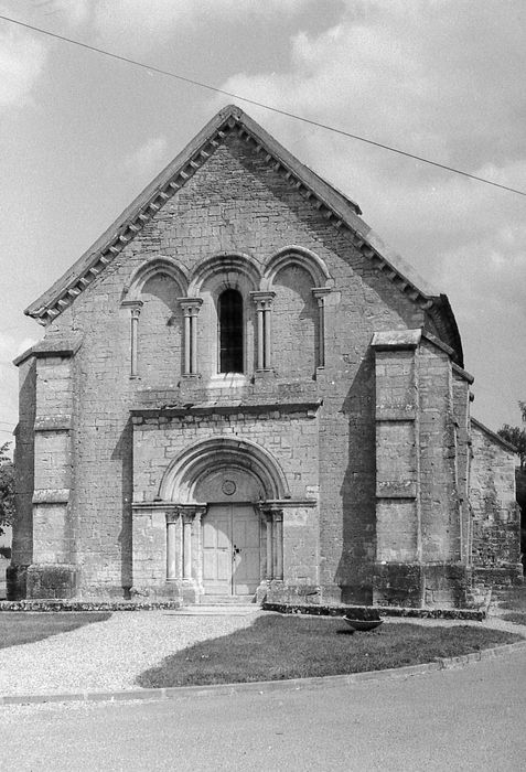 Constituée d'un choeur à chevet plat datable du 12e siècle, d'une nef légèrement postérieure surmontée d'un clocher-peigne et devancée par un portail en plein cintre à colonnettes géminées, l'église est un exemple remarquable de l'architecture rurale bourguignonne de style roman. L'intérieur est en partie recouvert de peintures murales attribuées à quatre campagnes réalisées entre le 15e et le 17e siècle.