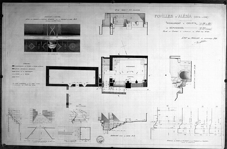Les restes du théâtre gallo-romain au Mont-Auxois (cad. B 78p, 79, 80p, 40p, 469 p) : classement par arrêté du 1er décembre 1908 - Le quartier de huttes gauloises sis au lieu-dit En Curiot au Mont-Auxois (cad. B 635) : classement par arrêté du 9 mai 1914 , déclassé par arrêté du 16 décembre 1953 - Les restes de l'ancienne Alésia au lieu-dit La Combe (cad. B 630, actuel B 81) : classement par arrêté du 12 mai 1924 - Les restes de l'ancienne Alésia comprenant : le temple, le monument à trois absides, le monument à double colonnade, le monument à crypte, l'emplacement du forum, les huttes et foyers gaulois (cad. B 633, 634, 639635, actuel B 77p-78p) : classement par arrêté du 26 janvier 1925 - Les parcelles B 289 à 294 (actuel B 155p-160) au lieudit La Croix-Saint-Charles et B 397 à 399, 400, 426 au lieu-dit En Surelot (actuel B 258p, 197-204) et B 600 à 603 (actuel B 33 et 30) au lieu-dit En Curiot et B 628 (actuel B 40) au lieudit La Combe et B 636 (B 82-84) au lieu-dit Le Cimetière-Saint-Père de la section B du plan cadastral de la commune d'Alise-Sainte-Reine contenant des vestiges archéologiques (cad. B 289 à 294, 397 à 400, 426, 600 à 603, 628, 636) : classement par arrêté du 16 décembre 1953.