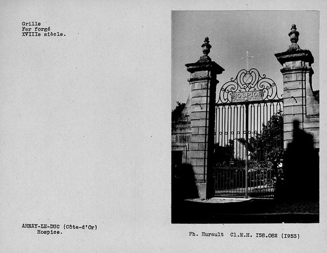Portail d'entrée, rue Saint-Jacques, et sa grille ; façades et toitures du pavillon du gardien, du bâtiment de l'hospice, du pigeonnier (cad. AK 149, 150) : inscription par arrêté du 8 décembre 1981