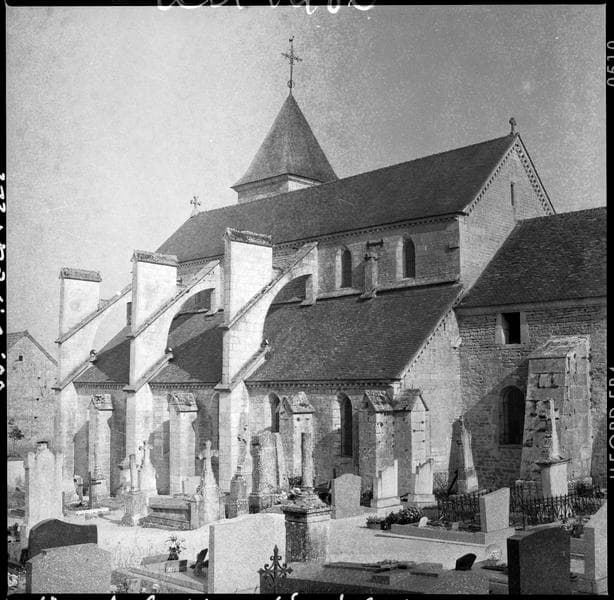 Choeur de la fin du 12e ou du début du 13e siècle. Nef et bas-côtés du 15e siècle. Porche à l'Antique de la fin du 18e siècle. Arcs-boutants ajoutés à la fin du 19e siècle.