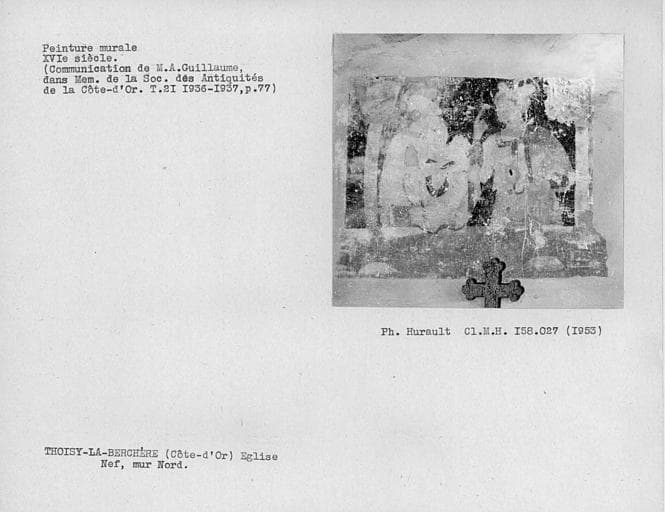 © Monuments historiques, 1992. Cette notice reprend intégralement les termes de l’arrêté de protection au titre des Monuments historiques. Elle répond à l’obligation réglementaire du ministère de la Culture d’établir la liste générale des immeubles protégés (art. R. 621-80 du Code du patrimoine). Elle est donc opposable et fait foi juridiquement. Aucune copie numérique ou papier ne sera fournie par courrier ni courriel. Le dossier de protection complet et l’arrêté sont consultables uniquement sur place, dans la salle de lecture de la Médiathèque du patrimoine et de la photographie (MPP), à Charenton-le-Pont (Val-de-Marne).