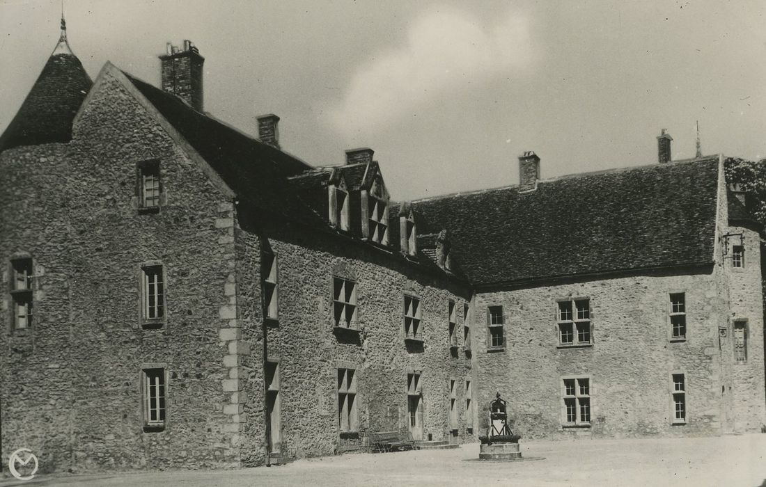 Les façades et toitures ; les caves voutées (cad. B 437) : inscription par arrêté du 7 octobre 1975 - Les communs (écurie - vacherie) , la maison du gardien, le chenil, le colombier, en totalité ; le mur situé dans la cour avec sa tourelle, le puits, le portail et la grille, le jardin et les murs de clôture (cad. B 436 à 438, 440, 441) : inscription par arrêté du 25 février 2002