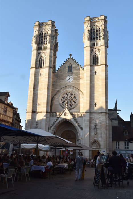 Eglise, sauf portail et tours Ouest : 13e siècle, 14e siècle ; Façade avec ses deux tours : 18e siècle, 2e quart 19e siècle, par Antoine CHENAVARD