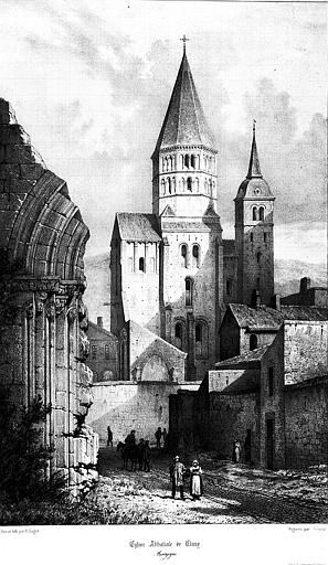 Site de l'abbaye constitué par l'aire anciennement occupée par l'abbaye et les terrains situés au nord, entre son ancienne enceinte et la nouvelle route en construction (RN 80) : site inscrit 25 03 1941 (arrêté). Site archéologique : 71 137 8 AH (Cluny III).