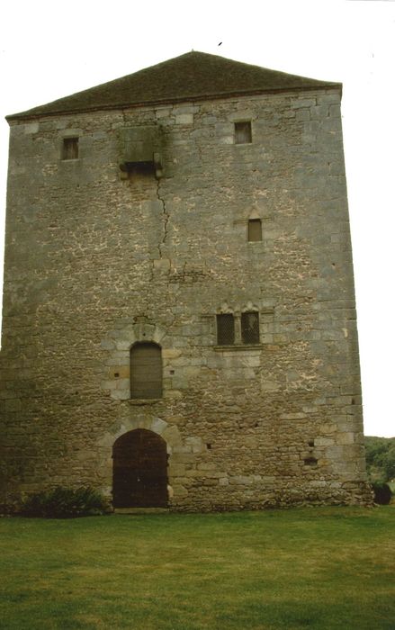Château cité dans les textes en 1104. Appartient aux Sires de Marigny jusqu'en 1370. Château ruiné dès 1543 : il ne reste que le donjon, à baies geminées trilobées. Château reconstruit et parties ajoutées au 19e siècle.