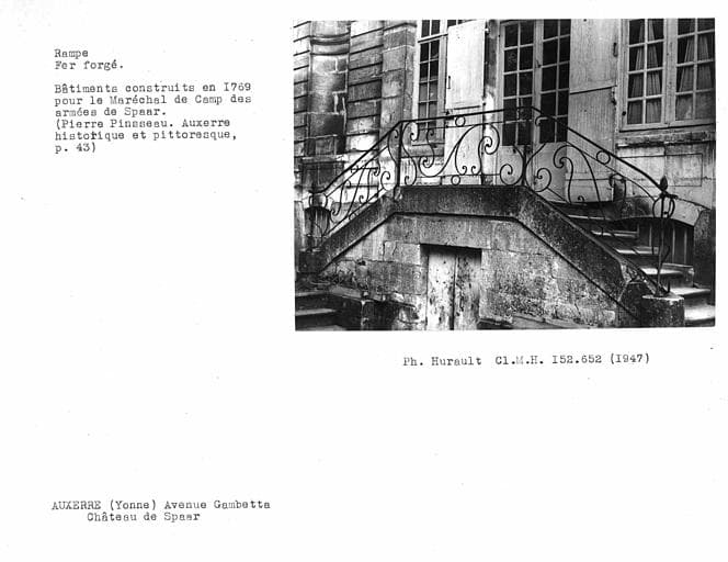 (c) Monuments historiques. Cette notice reprend intégralement les termes de l’arrêté de protection au titre des Monuments historiques. Elle répond à l’obligation réglementaire du ministère de la Culture d’établir la liste générale des immeubles protégés (art. R. 621-80 du Code du patrimoine). Elle est donc opposable et fait foi juridiquement. Aucune copie numérique ou papier ne sera fournie par courrier ni courriel. Le dossier de protection complet et l’arrêté sont consultables uniquement sur place, dans la salle de lecture de la Médiathèque du patrimoine et de la photographie (MPP), à Charenton-le-Pont (Val-de-Marne).