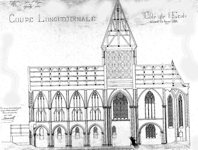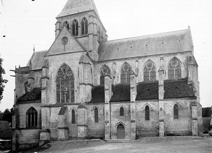 Tout en pierre de taille, cette simple église paroissiale bénéficie de la combinaison d'éléments architectoniques et stylistiques élaborés qui, portant la marque de l'influence rémoise, offrent l'un des exemples les plus aboutis des formules rayonnantes en Beauvaisis rural. Des campagnes de restaurations ont eu lieu en 1924, 1962, 1980, 1983. L'église paroissiale, établie sur un terrain en forte déclivité, ce qui explique l'existence d'une crypte sous la sacristie du 14e siècle ; au flanc sud de l'abside, offre un plan régulier qui révèle pourtant la juxtaposition de plusieurs campagnes de travaux successives. Trois siècles séparent en effet la nef rayonnante de quatre travées, bordée de collatéraux simples, élevée vers 1240-1250, de l'abside flamboyante élancée qui a sans-doute remplacé, vers 1540, le chevet plat du sanctuaire médiéval. Entre-temps auront été bâtis, à la fin du 13e et au début du 14e siècle, le transept, dont la croisée supporte un clocher trapu carré, ainsi que la travée droite de choeur, flanquée de chapelles collatérales. Tout en pierre de taille de moyen appareil, seule discordance dans ce concert architectonique, le mur du collatéral nord de la nef, dont les assises inférieures, bâties en moellons, se prolongent au même niveau du croisillon nord, témoigne des tâtonnements des maîtres d'oeuvre du 13e siècle, lors de la construction de la nef.