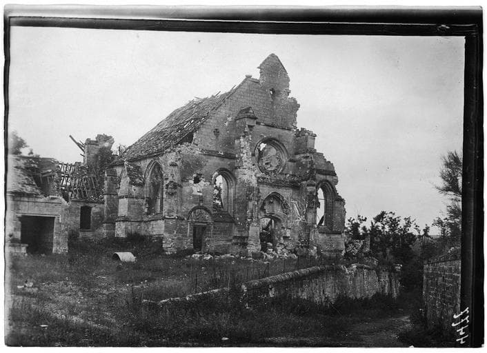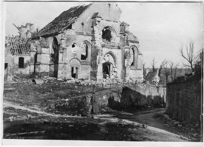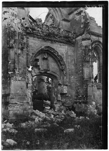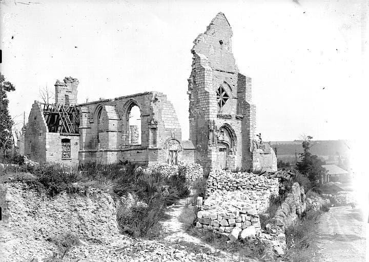 Important édifice du 16e siècle au riche décor, l'église fut atteinte par de nombreux projectiles et il n'en subsistait plus en 1918 que les maçonneries et la crypte. L'édifice fut en conséquence reconstruit en supprimant certaines parties sculptées, notamment celles de la flèche, dont la reconstitution eût été trop onéreuse. Campagnes de restauration en 1956.