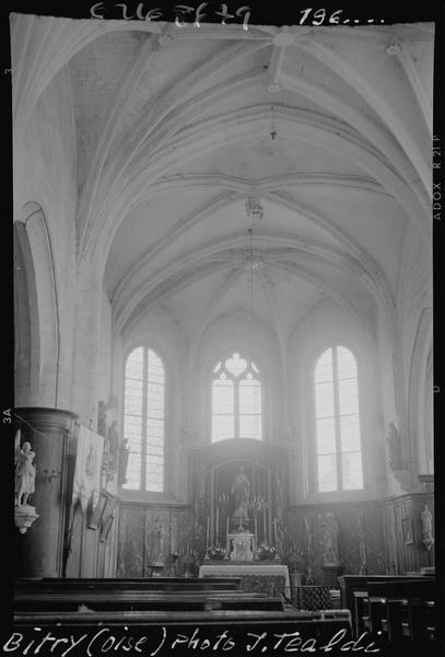 L'église de Bitry est un édifice particulièrement remarquable, son clocher est unique dans tout le Soissonnais : c'est une flèche en pierre datant du 12e siècle. La base du clocher remonte au 9e et les travaux se sont poursuivis jusqu'au 16e siècle. La Renaissance a laissé son empreinte avec trois portails et la salamandre de François 1er gravée dans la pierre. En 1991, lors de travaux de restauration, un sarcophage datant du 8e ou 9e siècle a été découvert sous la chapelle romane ; ce sarcophage est exposé au musée Vivenel à Compiègne.