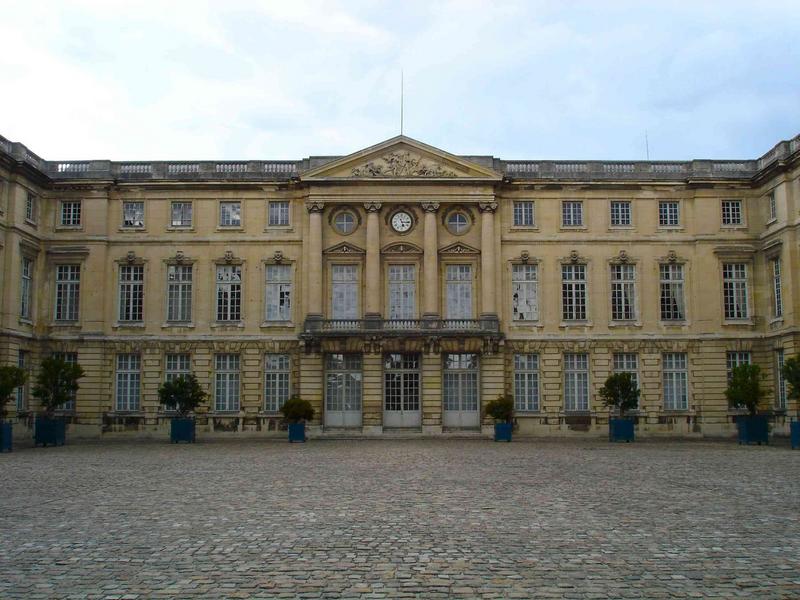 Ancien domaine de la Couronne. Reconstruction décidée sous Louis XV d'après le projet de J.-A. Gabriel de 1751, poursuivi jusqu'en 1787 par L. Le Dreux de la Chatre. Nouvelle série de travaux sous Louis XVI. Aménagements intérieurs somptueux sous le Premier Empire. Dernière période de faste sous le Second Empire, Napoléon III et Eugénie en faisant leur demeure de prédilection. Vocation muséale à partir de 1873. Aménagement du parc par Gabriel et Le Dreux de la Chatre, modifié par Berthault entre 1811 et 1817. Petit Château du 18e siècle. Grandes écuries actuellement haras national.