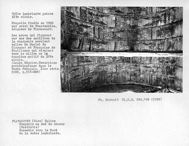 © Monuments historiques, 1992. Cette notice reprend intégralement les termes de l’arrêté de protection au titre des Monuments historiques. Elle répond à l’obligation réglementaire du ministère de la Culture d’établir la liste générale des immeubles protégés (art. R. 621-80 du Code du patrimoine). Elle est donc opposable et fait foi juridiquement. Aucune copie numérique ou papier ne sera fournie par courrier ni courriel. Le dossier de protection complet et l’arrêté sont consultables uniquement sur place, dans la salle de lecture de la Médiathèque du patrimoine et de la photographie (MPP), à Charenton-le-Pont (Val-de-Marne).