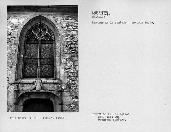 Les éléments les plus anciens de l'église de Lierville remontent à la fin du 12e siècle. Ils comprennent le mur sud de la nef, le portail occidental et le clocher. La flèche de ce clocher et sept pans sur huit de son étage se sont malheureusement effondrés en janvier 1968 et ont été reconstruits à l'identique. A la fin du 12e siècle, le choeur de l'édifice est démoli et, à sa place, il en est construit un nouveau de deux travées : la première accolée au clocher, la seconde à la suite, terminée par un chevet plat. Au 13e ou au 14e siècle, cette travée orientale est doublée au sud par une autre, accolée elle-même au clocher. Au 16e siècle, la reconstruction totale de la nef est vraisemblablement entreprise, mais se limite à l'édification d'un bas-côté au sud, de cinq travées en avant de celui du choeur.