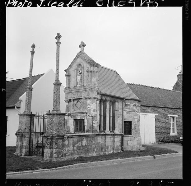© Monuments historiques, 1992. Cette notice reprend intégralement les termes de l’arrêté de protection au titre des Monuments historiques. Elle répond à l’obligation réglementaire du ministère de la Culture d’établir la liste générale des immeubles protégés (art. R. 621-80 du Code du patrimoine). Elle est donc opposable et fait foi juridiquement. Aucune copie numérique ou papier ne sera fournie par courrier ni courriel. Le dossier de protection complet et l’arrêté sont consultables uniquement sur place, dans la salle de lecture de la Médiathèque du patrimoine et de la photographie (MPP), à Charenton-le-Pont (Val-de-Marne).