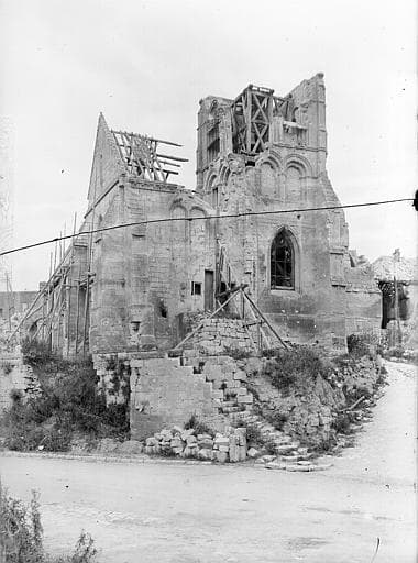 De cette église des 12e, 13e et 16e siècles, il ne subsistait plus après la Première Guerre mondiale que la base du choeur et du clocher et une partie des deux nef accolées.