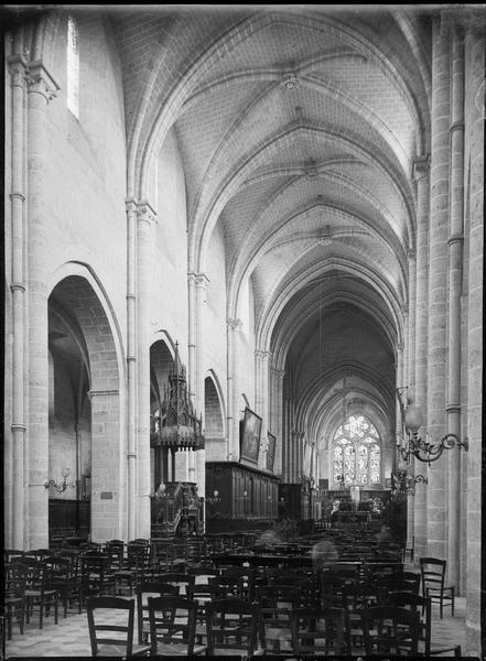 En 1124, les Prémontrés succèdent à un chapitre de chanoines. Eglise édifiée dans la seconde moitié du 12e siècle. Edification du choeur, du transept et de la nef vers 1160. Vers 1190, remplacement de la charpente primitive par une voûte contrebutée par des arcs-boutants ; élévation de la façade du bras sud du transept. En 1226-1240, le choeur est couvert d'une charpente. Construction des tours jusqu'à la fin du 13e siècle. Les flèches sont abattues en 1605. Entre 1616 et 1621, construction du palais abbatial et du pavillon situé dans le jardin. En 1736, reconstruction par les architectes Charles et Nicolas Bonhomme. Reconstrution de la tour nord-est en 1740. Reconstruction des ailes nord et ouest et des galeries du cloître de 1779 à 1788. Après la Révolution, l'église devient paroissiale et les autres bâtiments sont aménagés par l'ingénieur Duroché pour accueillir l'hôtel-Dieu en 1810. En 1944, destruction des bâtiments entourant la cour.
