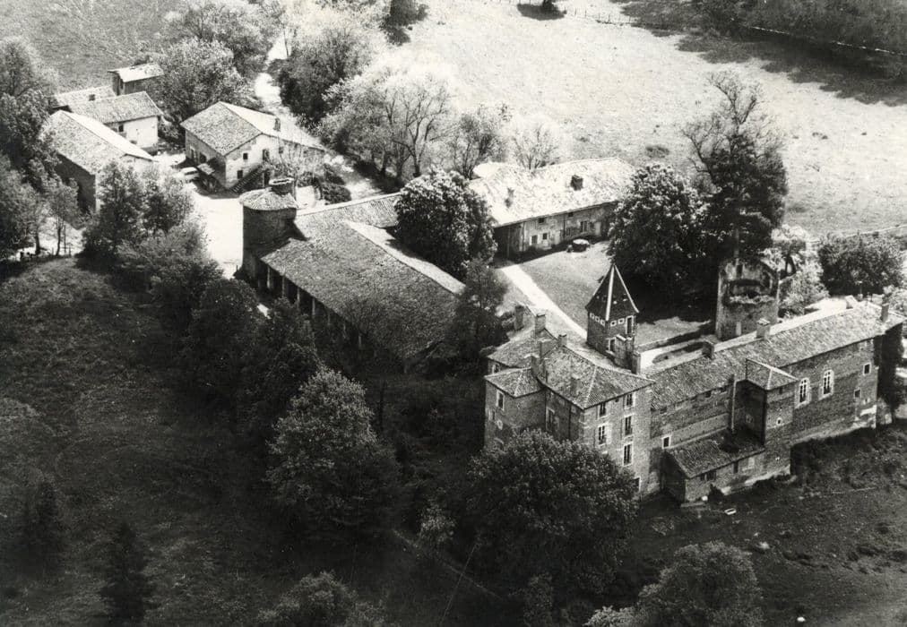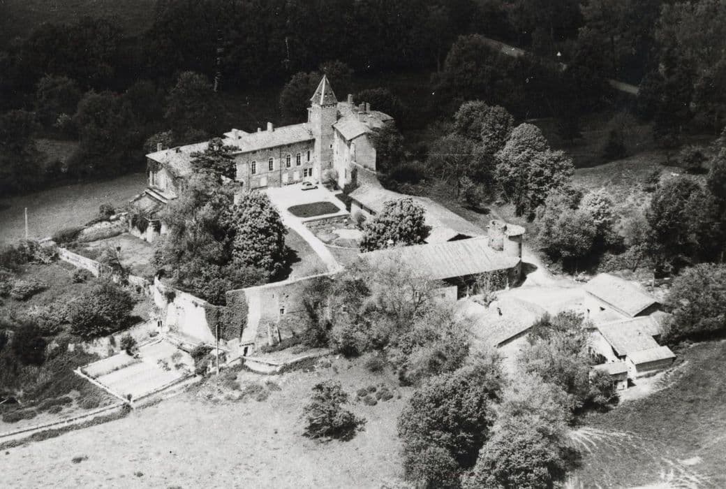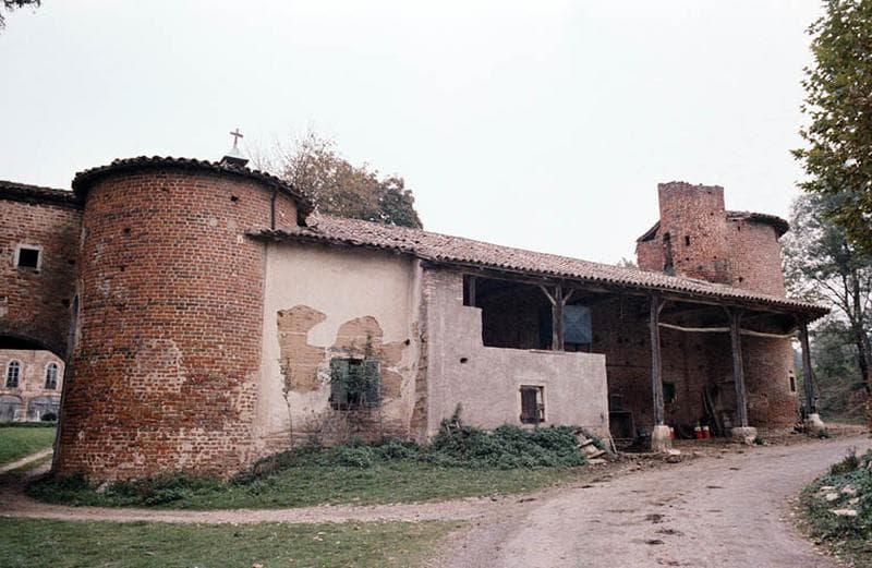 Edifice s'inscrivant dans la tradition des forteresses en briques rouges (carrons savoyards) de la Dombes, de la fin du 13e ou du début du 14e siècle. Mentionné dès le 13e siècle, le château était à l'origine une place forte composée de quatre enceintes, dix-neuf tours, et d'une garnison armée. A l'ouest, le corps principal abrite le donjon ainsi que la partie la plus ancienne de l'habitation. Au 16e siècle, une galerie voûtée a été édifiée, masquant des éléments gothiques antérieurs. Le donjon conserve des peintures du 16e siècle : une danse macabre est représentée sur une poutre du second étage ; les poutres du rez-de-chaussée s'ornent également de peintures décoratives. Au 18e siècle, les comtes transforment la forteresse en résidence, perçant des baies sur les faces ouest et Est. Au 19e siècle, l'enceinte intérieure qui reliait la tour ronde de la cour au bâtiment nord est détruite. Dans la partie Est, une chapelle sans doute ancienne servait de lieu de culte à l'ensemble du bourg au 16e siècle. Elle abrite une crypte, et a également subi des transformations aux 18e et 19e siècles.