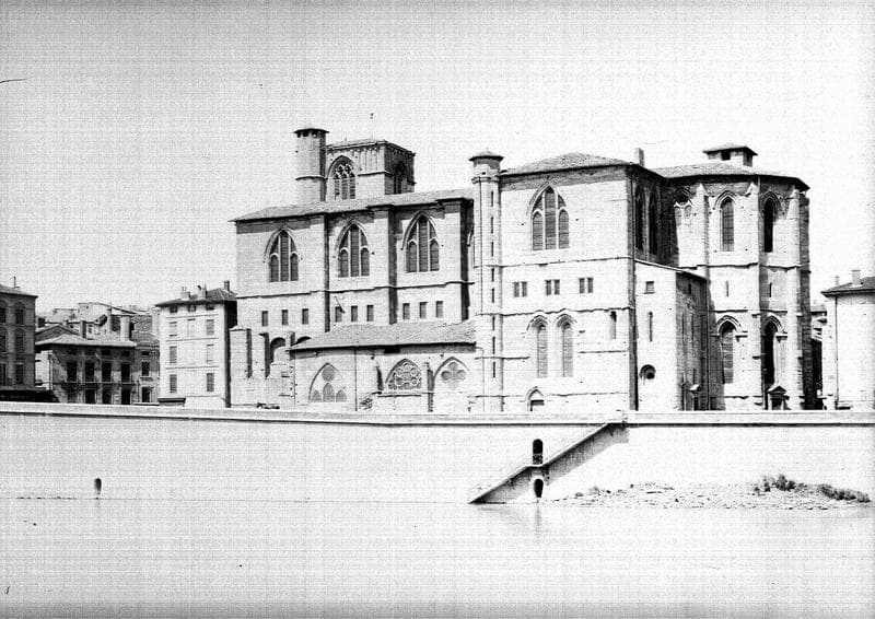 En 838, fondation d'un monastère par l'archevêque de Vienne. L'église, édifiée en mémoire de martyrs viennois, est placée sous le vocable de Saint-Paul et Saint-Pierre. Entre 932 et 939, des chanoines s'y installent et développent le culte des reliques de Saint-Barnard qui donne lieu à un pèlerinage. En 1049, un cloître est adossé à l'église (détruit en 1857). En 1134, l'église est rebâtie suite à un incendie. De cette reconstruction datent les parties romanes. La deuxième grande phase de construction débute en 1238. L'église est couverte de voûtes sur croisées d'ogives et le triforium est surmonté d'une coursière. Le sac que connaît l'église en 1280 entraîne la destruction d'un clocher-porche situé sur la façade occidentale. La construction du clocher rectangulaire actuel daterait de cette disparition. Une salle capitulaire est édifiée au 14ème siècle puis aggrandie avant 1440 par deux chapelles (détruite en 1870). L'église est endommagée au cours des guerres de Religion. Des restaurations sont entreprises entre 1574 et 1718.