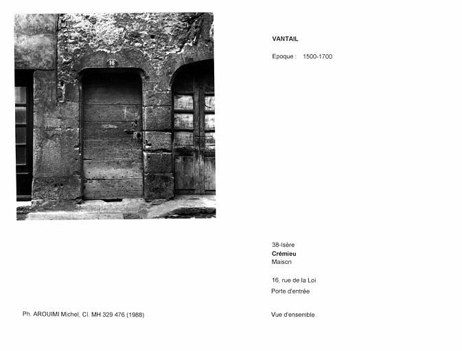 Auvergne-Rhône-Alpes ; Isère (38) ; Crémieu ; 16 rue de la Loi