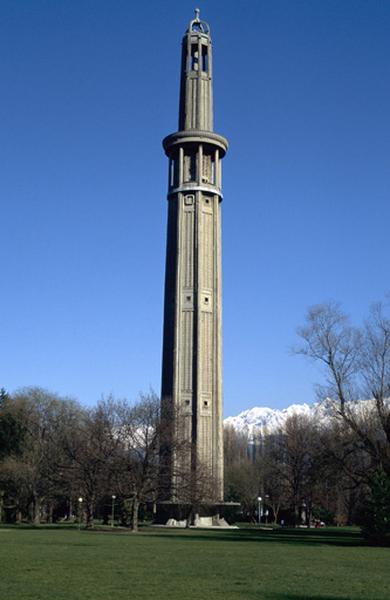 La tour, construite par les frères Auguste et Gustave Perret, reste aujourd'hui le seul témoin de l'exposition internationale de la houille blanche et du tourisme, qui eut lieu du 21 mai au 25 octobre 1925 et rencontra un écho international. Située dans le parc Paul-Mistral au voisinage immédiat de l'hôtel de ville, cette tour, dite d'orientation, marquait l'entrée de l'exposition et était destinée à faire découvrir au visiteur le panorama des Alpes depuis le dernier étage accessible par un ascenseur et par des escaliers hélicoïdaux. Haute de 95 mètres et large de près de 8 mètres à la base, elle est construite sur plan octogonal en béton armé et présente une ossature de huit poteaux verticaux. La partie terminale est ajourée, laissant voir au centre l'escalier qui conduit au dernier niveau. Cette tour, édifiée en 1924, est la première tour en béton armé construite en Europe.