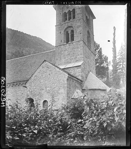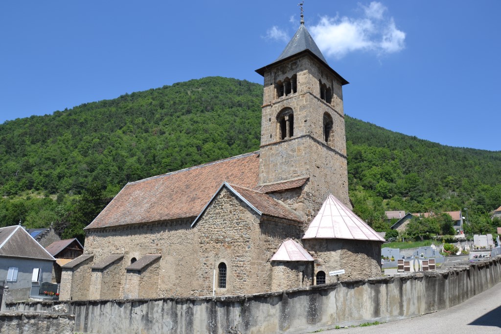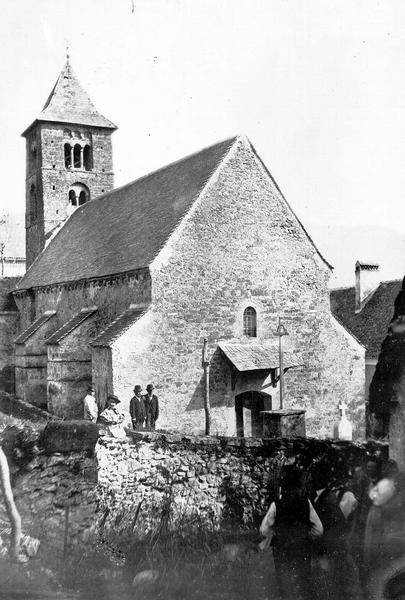 L’église est bâtie en forme de croix latine, avec un transept bas. Trois absidioles en hémicycle sont greffées sur le chevet et le côté est du transept, tandis qu’un haut clocher surplombe le chœur ; il comporte deux étages percés de baies géminées et trigéminées sur les quatre côtés. Les deux étages d’ouvertures sont séparés par des bandeaux plats.