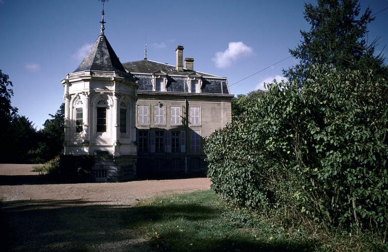 L'emplacement actuel du château est occupé depuis le 13e siècle. La demeure édifiée en 1730, composée d'un corps principal avec pignon central et de pavillons aux deux extrémités, est retouchée au 19e siècle. En 1825 est adjoint une construction en forme de péristyle grec à l'emplacement délimité par les deux avants-corps encadrant le bâtiment principal. De 1878 à 1880 construction de la chapelle Renaissance par l'architecte Carra. Vitraux réalisées par Lucien Begule, maître-verrier lyonnais. Vers 1892, construction de bâtiments à vocation agricole, ainsi qu'un pavillon de gardiens.