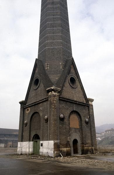 Les frères Marrel, qui disposaient à Rive-de-Gier d'une usine de forgeage depuis 1853, décidèrent au bout de quelques années de construire une usine nouvelle dont la superficie totale allait finalement couvrir 12 hectares. D'immenses bâtiments pour les laminoirs à tôles, pour les blindages, des marteaux-pilons de 25, 50 et 100 tonnes, puis une fonderie d'acier et une aciérie Martin furent construits. De cette vaste usine, seule subsistait la cheminée, lancée en 1867, haute de 108 m, qui fut pendant de longues années la plus élevée d'Europe. Elle comporte un fût octogonal en brique cerclé de fer, inséré dans une embase carrée de 8 m de côté et 16 m de haut. Les parois du fût font 1, 50 m d'épaisseur. Elle est le seul élément protégé se rapportant à la production dans l'usine Marrel. La maison de la famille Marrel est située à Rive-de-Gier, 38, rue du Professeur-Roux.
